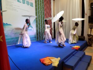 Le slogan retenu « L’art comme partage du patrimoine immatériel » résume bien l’esprit de la manifestation. À travers une série d’installations artistiques, d’expositions de costumes, de démonstrations de calligraphie et de performances contemporaines, les artistes venus de Chine ont présenté une ville plurimillénaire en perpétuelle réinvention. Xi’an, autrefois appelée Chang’an, s’est dévoilée sous un jour à la fois ancré dans la mémoire et résolument tournée vers l’avenir. Prenant la parole à l’ouverture, l’ambassadeur de Chine près le Bénin, S.E.M. Zhang Wei, a salué l’organisation de l’événement comme un signe tangible du renforcement des liens culturels entre les deux pays. Il a évoqué l’accueil récent d’un réalisateur béninois à Xi’an, soulignant la richesse de ces échanges artistiques bilatéraux. Mettant en lumière l’axe stratégique de la coopération sino-béninoise, il a annoncé l’invitation prochaine d’autres artistes béninois en Chine, avant de conclure par un vibrant plaidoyer en faveur d’un rapprochement humain fondé sur l’art et la culture.