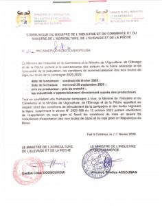 communiqué conditions de commercialisation des noix brutes de cajou campagne 2025-2026
