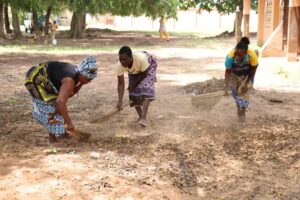 Quelques photos des membres du comité de gestion de la direction et des femmes cuisinières en pleine campagne de salubrité dans la cours de l’école