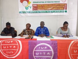 « Rendre les femmes visibles en santé et sécurité au travail : la ménopause, facteur à risques et de baisse de la productivité en milieu de travail », tel est le thème de ce séminaire de formation conjointement organisé par le Comité des Femmes Syndicalistes du Bénin (Cofesyb) et le Comité National des Syndicats du Bénin (Conasyb), tous deux affiliés à l’Uita. Le séminaire a réuni des femmes et des hommes venus de plusieurs organisations syndicales membres de l’Uita-Bénin. Lors de l’ouverture des travaux, Mme Nouratou Gambia, présidente du Cofesyb/Uita, a souligné combien la ménopause est encore perçue comme un sujet privé, alors qu’elle affecte significativement la productivité des travailleuses. « Rendre visibles les problématiques spécifiques aux femmes en matière de santé et sécurité au travail est une question de justice sociale », a-t-elle affirmé. Elle a insisté sur l’importance de sensibiliser les militantes et militants à cette réalité afin d’impulser des politiques adaptées. La ménopause, selon elle, est une étape naturelle qui, en raison du silence qui l’entoure, se transforme souvent en facteur de vulnérabilité professionnelle. « Le combat pour la reconnaissance de cette réalité dans le monde syndical est aussi un combat pour l’égalité », a-t-elle conclu. Pour Tossa F. Guillaume, coordonnateur national de l’uita-Bénin, cette initiative s’inscrit dans la mise en œuvre du troisième pilier du programme 2023-2027 de l’Uita sur l’égalité. Il a salué la mobilisation des participants et exprimé ses remerciements au Secrétaire Régional pour le soutien financier qui a permis la tenue de cette activité. « Cette formation est la première de l’année, mais elle est surtout pionnière dans la manière d’aborder frontalement un sujet encore trop souvent ignoré : la visibilité des femmes en santé et sécurité au travail », a-t-il déclaré. Il a rappelé que la ménopause, au même titre que les menstruations, est une réalité biologique et sociale qui ne devrait plus être taboue en milieu professionnel. À ses yeux, « il faut construire des environnements de travail sans discrimination, favorables à l’expression du plein potentiel des femmes ». Il a exhorté les participants à s’impliquer activement dans les travaux afin de faire progresser cette lutte syndicale prioritaire. Des communications de fond ont enrichi les échanges. Les discussions ont mis en lumière une réalité ignorée : la ménopause, avec ses symptômes (fatigue, troubles du sommeil, bouffées de chaleur, anxiété), impacte directement la performance au travail. Pourtant, peu d’entreprises offrent un accompagnement adapté. À l’issue des travaux, des engagements syndicaux ont été pris pour : visibiliser la ménopause comme enjeu syndical, mettre en place des mesures d’accompagnement et former les représentants syndicaux sur la santé des femmes. Ce séminaire marque une avancée importante dans l’intégration de la dimension genre dans l’action syndicale. « Ce séminaire nous rappelle que la santé des travailleuses est une question de justice sociale et de productivité. En rendant visibles ces enjeux, nous ouvrons la voie à un changement durable dans le monde du travail », a déclaré Tossa F. Guillaume, coordonnateur national de l’Uita-Bénin, sous les applaudissements nourris. Les objectifs du séminaire étaient de sensibiliser les syndicats sur l’importance de la ménopause en tant que facteur de risques en milieu professionnel, de renforcer les capacités des représentants syndicaux pour mieux défendre les travailleuses, de promouvoir l’intégration des problématiques de santé féminine dans les politiques de santé et sécurité au travail, et enfin d’encourager l’adoption de mesures concrètes d’accompagnement pour améliorer la qualité de vie et la productivité des femmes au travail.