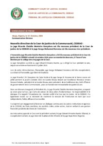 Un nouveau juge s’installe désormais à la tête de la Cour de justice de la Cedeao. Réunis le lundi 14 octobre 2024, les cinq honorables juges de la Cour ont désigné le juge Ricardo Claudio Monteiro Gonçalves de Cabo Verde comme président de la Cour communautaire. Il succède ainsi au juge Edward Amoako Asanté qui a dirigé l’institution pendant 6 ans. Dans la même foulée, les membres de la Cour ont désigné leur nouveau vice-président en la personne du juge Sengu M. Koroma de la Sierra Leone. Il faut rappeler que les juges Ricardo Claudio Monteiro Gonçalves et Sengu M. Koroma ont prêté serment le 6 Octobre devant le président Umaro Sissoko Embalo, président de la Guinée Bissau, alors président de la Conférence des chefs d’Etat et de gouvernement de la Cedeao.