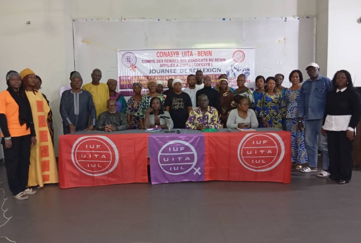 Placé sous le thème : « Mobilisation et Recrutement Syndical : Quelles approches pour les organisations syndicales des secteurs de l’UITA au Bénin ? », cet atelier d’une journée a rassemblé les syndicats affiliés à l’UITA Bénin, ainsi que des dirigeants et des acteurs clés du monde du travail. Les objectifs de cet événement étaient d’élargir la base de membres des syndicats affiliés à l’UITA, en incluant notamment le secteur informel, et de favoriser le développement de nouvelles organisations syndicales. Dans son discours d’ouverture, Mme Nouratou Gambia, présidente du COFESYB/UITA, a salué la mobilisation des participants et insisté sur l’urgence d’adapter les stratégies syndicales aux réalités actuelles. Elle a notamment appelé à une plus grande inclusion des travailleurs du secteur informel, soulignant que seule une diversité de profils permettrait aux syndicats de rester représentatifs et influents. Prenant la parole à son tour, Tossa F. Guillaume, coordonnateur de l’UITA/Bénin, a officiellement lancé les travaux en invitant les syndicats à tirer des enseignements des modèles plus performants observés ailleurs. Il a alerté sur la fragilisation des petits syndicats face aux grandes organisations, notamment anglo-saxonnes, et a exhorté les participants à repenser leur fonctionnement pour mieux peser sur l’échiquier social. Le secrétaire général régional de l’UITA Afrique, Siméon Dossou, a également pris la parole avec un plaisir manifeste lors de ce séminaire crucial. Il a salué l’engagement des participants, venus de diverses régions du Bénin, soulignant que leur présence, malgré les défis socio-économiques et politiques, témoigne de la force inhérente du syndicalisme. M. Dossou a insisté sur un point essentiel : la puissance du mouvement syndical ne réside pas seulement dans ses membres actuels, mais surtout dans sa capacité à s’élargir et à se renouveler. Il a par ailleurs mis en lumière les secteurs couverts par l’UITA, notamment l’agroalimentaire, l’hôtellerie, la restauration, l’agriculture et les services commerciaux, des domaines où le recrutement et la mobilisation sont vitaux pour la pérennité et l’influence des syndicats. Tout au long de la journée, les participants ont échangé autour de communications sur la gestion syndicale et les techniques de recrutement, avant de passer à des travaux pratiques pour définir des actions concrètes. À l’issue de l’atelier, les participants se sont fixé un objectif ambitieux : une augmentation de 5 % du nombre de membres dans les syndicats, avec un engagement particulier en faveur de la représentation féminine. Mentionnons que le Comité National des Syndicats du Bénin affiliés à l’UITA (CONASYB‑UITA) est l’instance représentative des syndicats béninois affiliés à l’Union internationale des travailleurs de l’alimentation (UITA), une fédération mondiale de syndicats du secteur alimentaire, agricole et de l’hôtellerie-restauration.