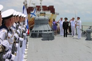 Le dimanche 29 septembre 2024, dans leur résidence, S.E.M. Igor EVDOKIMOV, Ambassadeur de la Fédération de Russie au Bénin et son épouse a marqué d’une tache d’huile cette arrivée du navire russe à Cotonou. Il a offert un cocktail suivi d’un mini concert animé par la marine russe à sa résidence à Cotonou.