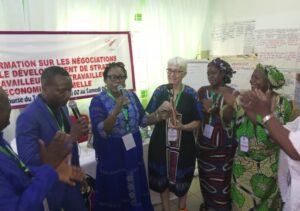Cette formation de cinq jours organisée par Streetnet International en collaboration avec la Confédération des syndicats autonomes du Bénin (Csa-Bénin) a outillé les travailleuses et travailleurs de l’économie informelle affiliés à Streetnet International à avoir des compétences de négociation, à gérer avec succès les négociations collectives. Les participants étaient venus du Syndicat National des Vendeurs, Vendeuses et Assimilés des Marchés du Bénin (Synavamab), de l’Union Syndicale des Vendeuses et Vendeurs de Pièces Détachées et Divers du Marché de Dantokpa (Usynvepid-Cspib) et de la Confédération des syndicats autonomes du Bénin (Csa-Bénin). Pendant les cinq jours, ces travailleuses et travailleurs de l’économie informelle ont acquis les rudiments pour sur comment faire le suivi des négociations. Grace à cette formation, ils ont désormais compris les étapes et les procédures qui font partie des processus de négociation. Ils ont appris à rédiger et appliquer des accords simples et élaborer un plan de négociation à mettre en œuvre dès le retour au travail. A la cérémonie qui a mis fin aux travaux, la Secrétaire générale du Synavamab Mme Anastasie Chodaton membre du membre du Conseil international de Streetnet International a dit sa satisfaction. « Nous sortons de cet atelier pour nous mettre à l’œuvre pour la cause commune. Désormais nous ne devons plus attendre les organisations syndicales avant d’aller négocier. Nous nous devons faire les efforts avant de les rencontrer » a fait savoir Mme Chodaton qui a remercié Streetnet International pour son soutien et l’a sollicité pour d’autres formations. Mais avant, elle a appelé à la solidarité entre les trois syndicats. A sa suite, la Conseillère principale de Streetnet international Mme Horn Pat s’est dite séduite par les résultats satisfaisants qui ont été enregistrés au terme de cet atelier. Elle a remercié la Csa Bénin pour la bonne organisation de cet atelier. « Je remercie tous pour votre accueil et votre bienveillance en vers moi. Je suis ravie d’avoir rencontré les femmes dans les différents secteurs à Cotonou et hors de Cotonou. Je suis très ravie du bon déroulement de l’atelier », a fait savoir Mme Pat. Mentionnons qu’au cours de cette cérémonie, des parchemins ont été remis aux bénéficiaires de la formation. Aussi, des attestations de reconnaissance ont été remises à Mme Horn Pat et à Mme Benjamin-Sampson Evelyn, organisatrice pour l’Afrique de l’Ouest et Centrale de Streetnet International.