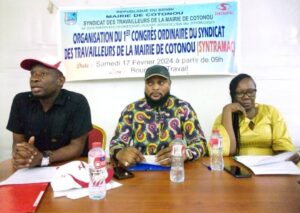 Les travaux du premier congrès ordinaire du Syndicat des travailleurs de la mairie de Cotonou (SYNTRAMAC) se sont déroulés le samedi 17 février 202. A la Bourse du travail à Cotonou, ces assises ont accouché d’importantes décisions pour le bien du syndicat et de la mairie de Cotonou.