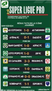 La seule victoire à l’extérieur de cette journée est à l’actif des joueurs de Dadjè FC qui ont réalisé le hold-up parfait face à Ayéma FC (0-1). À défaut des trois points, Dragons et Requins ont ramené de leur déplacement respectif, le point du match nul.