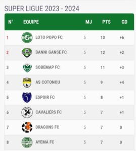 Voici les résultats et le classement à l’issue de la cinquième journée