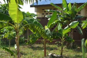 …des bananiers....et des plants de corossol à découvrir dans le verger de l’Epp Fanvi